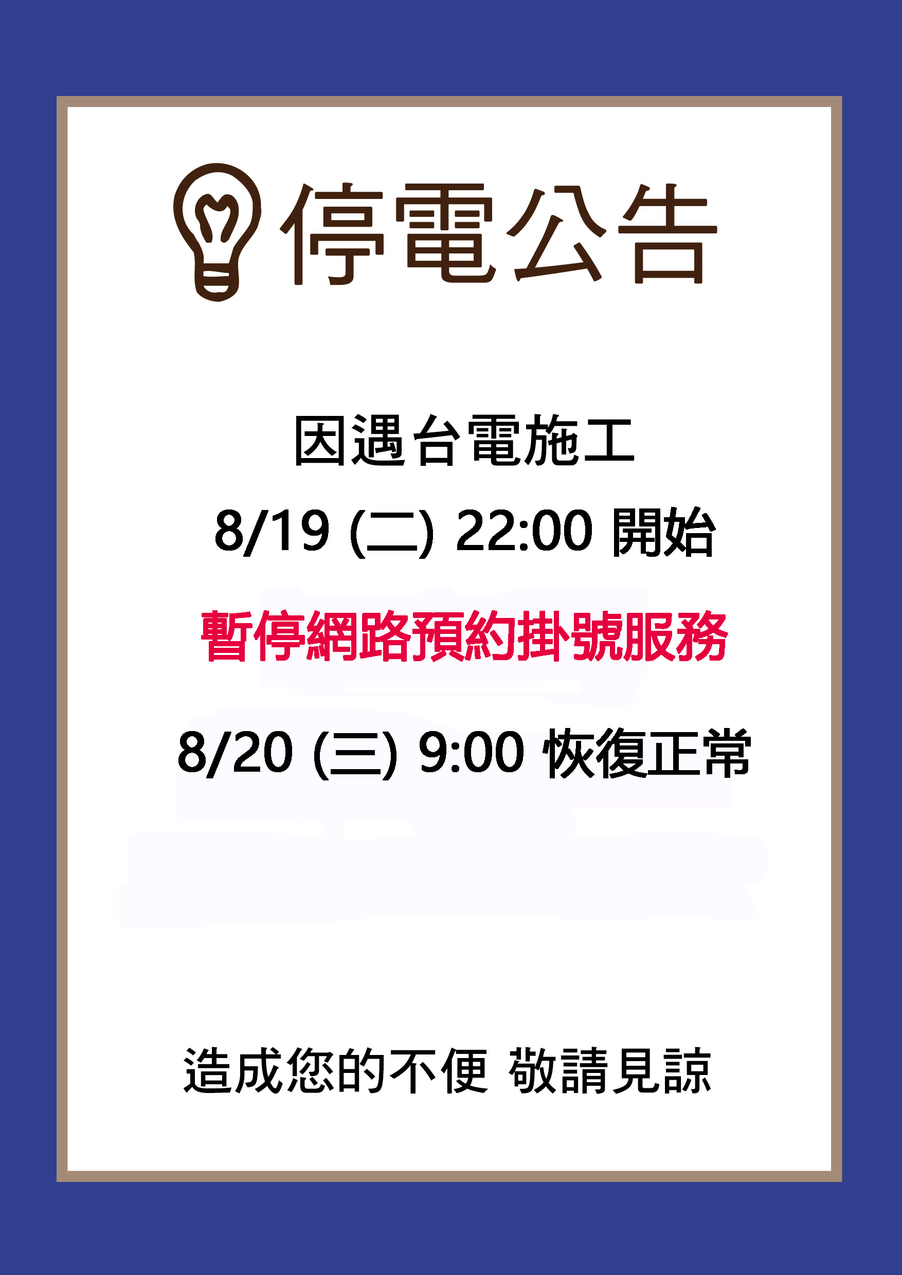 8/19(二) 晚上22:00~8/20(三)早上9:00